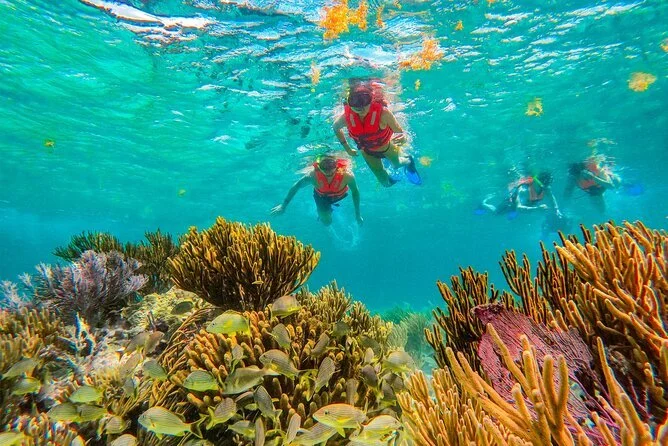 See the marine life of Mexico at the Great Maya Reef on this half-day snorkeling tour from Cancun and the Riviera Maya. Great Maya Reef is home to abundant marine wildlife, and is the world's second largest barrier reef. Your guide leads you to one of the best snorkeling locations where you can view colorful fish and corals, with time afterward at the fishing village of Puerto Morelos. Includes lunch at the beach club.cription goes here